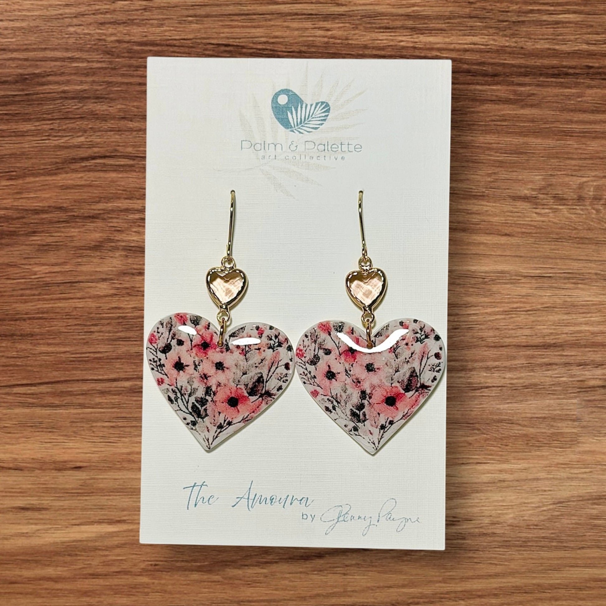 The Amoura is a love letter to autumn — a heart-shaped design that captures both the warmth of the season and the timeless beauty of love. With a bouquet of fall flowers printed on polymer clay, each piece is rich with seasonal charm. Suspended from a heart charm framed in gold, and finished with luminous French hooks, The Amoura glows with grace, making it the perfect statement of love for autumn days.
