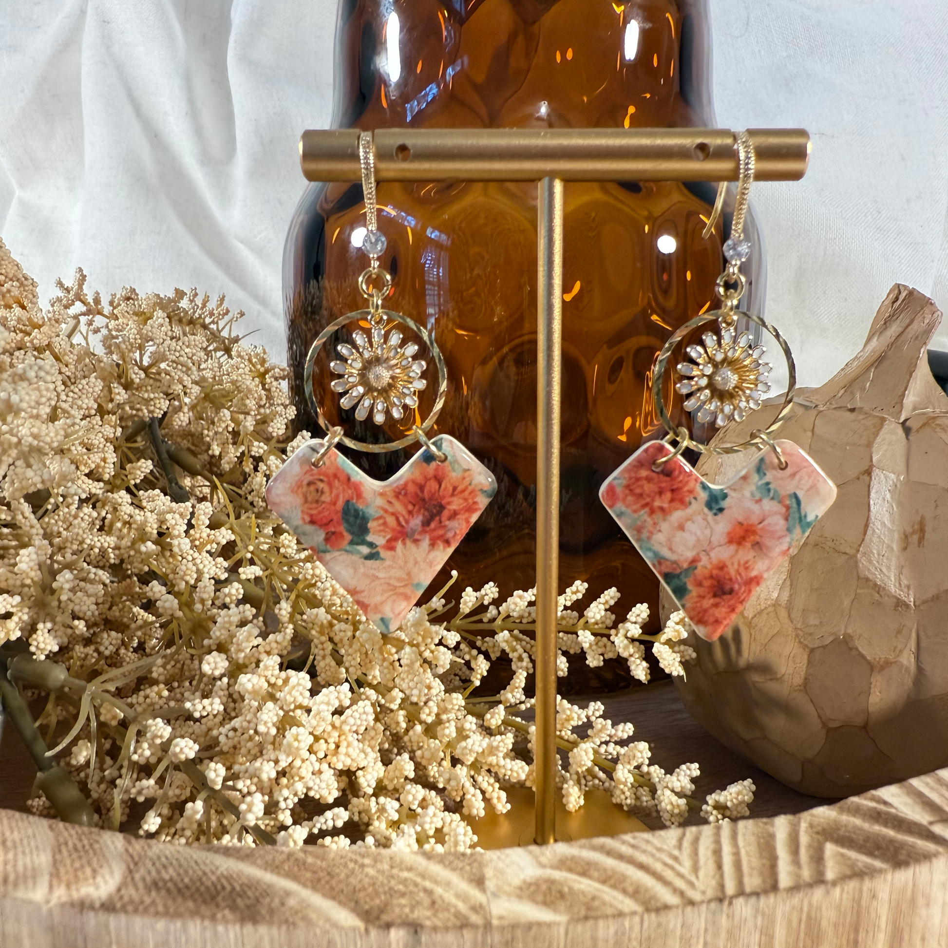 – Polymer clay with floral design with resin overlay