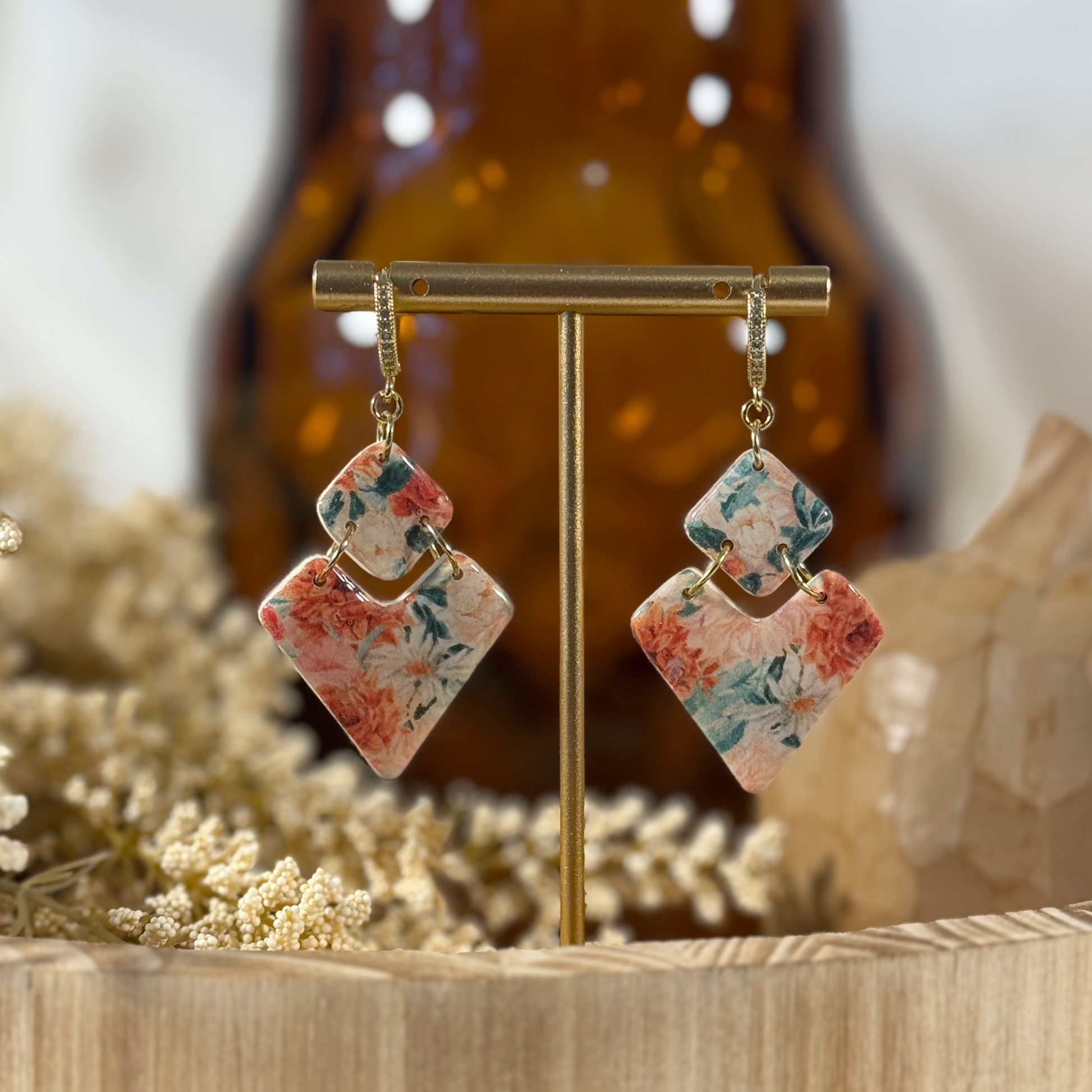 – Polymer clay with floral design with resin overlay