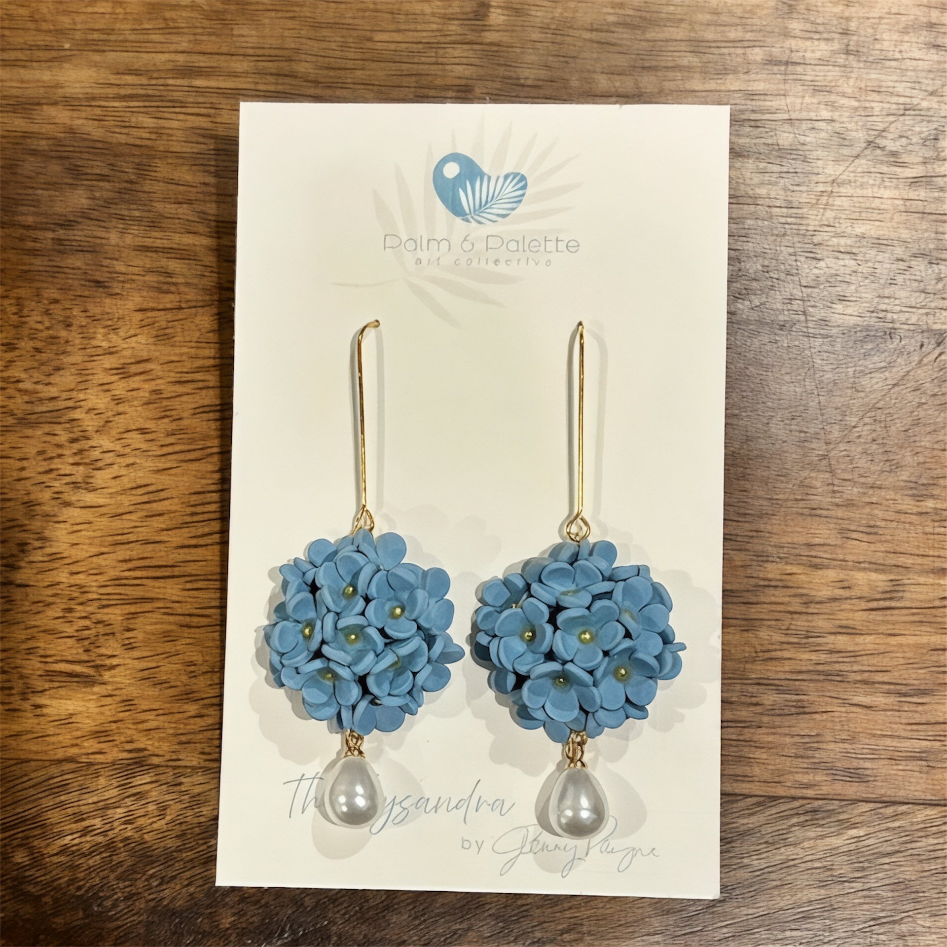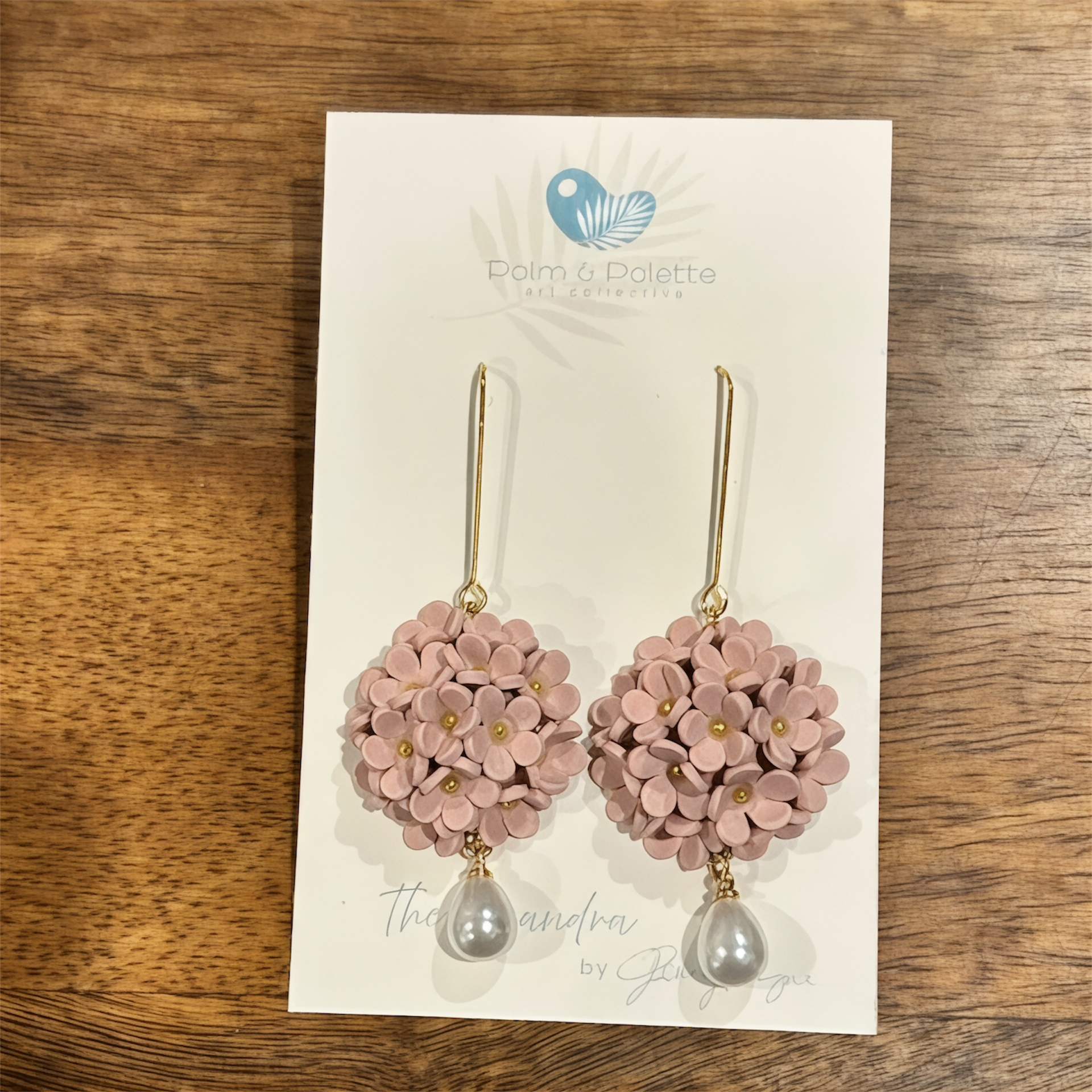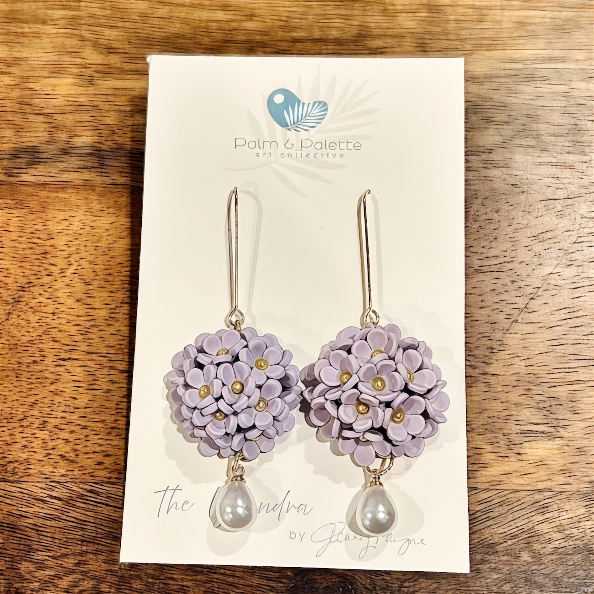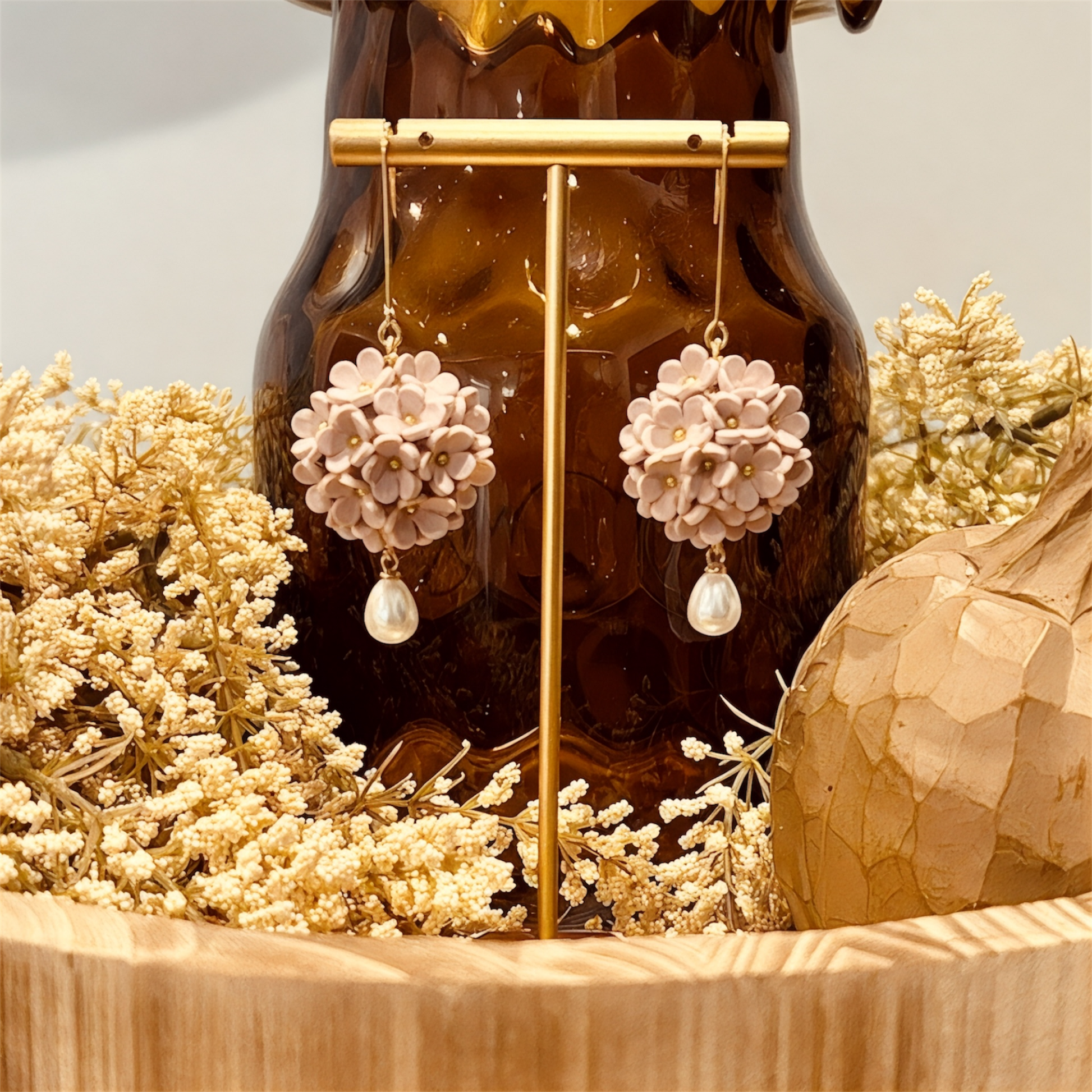 Romantic and refined, The Lysandra captures the elegance of a floral bouquet in motion. Each pair features a handcrafted cluster of polymer clay flowers, brought to life with intricate detail and artistry. From the bouquet dangles a luminous pearl, like a dewdrop at dawn, adding a touch of timeless grace. Suspended from long 18K gold-plated French hooks, The Lysandra embodies elegance and femininity — perfect for special occasions or as a statement of everyday beauty.