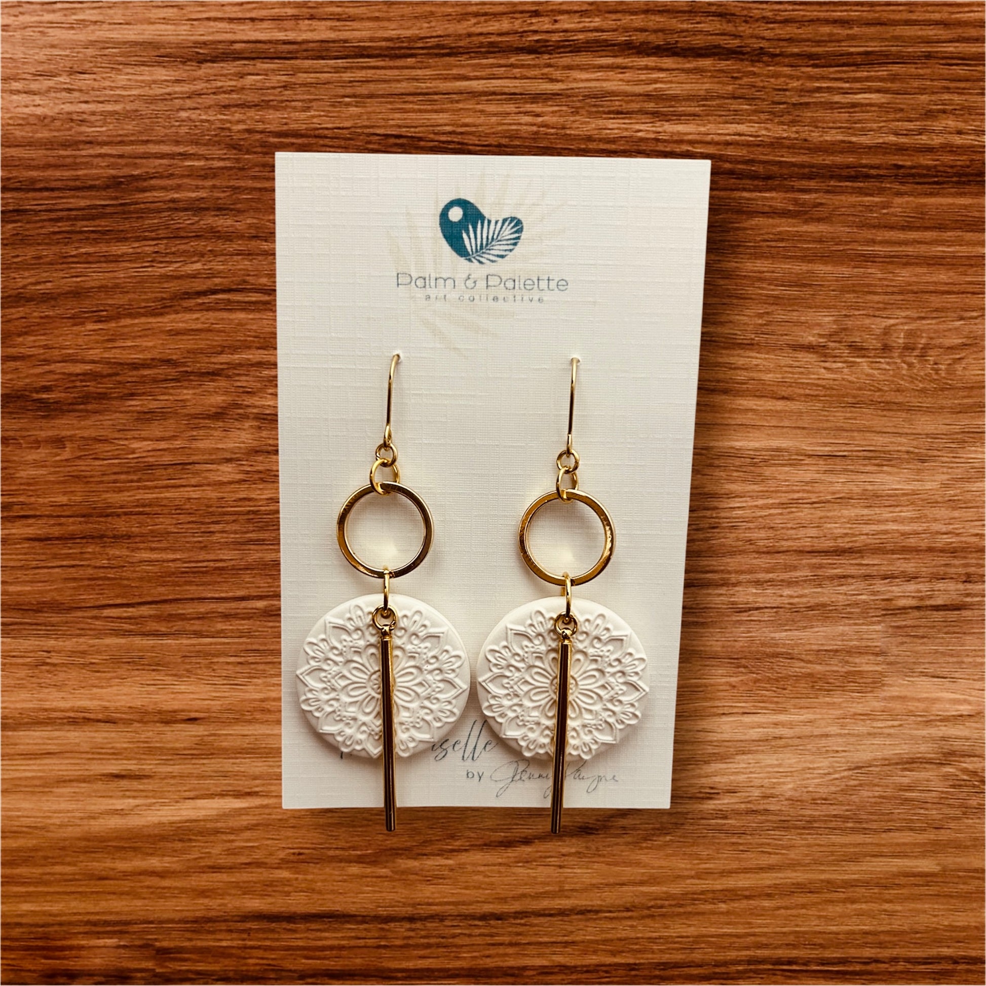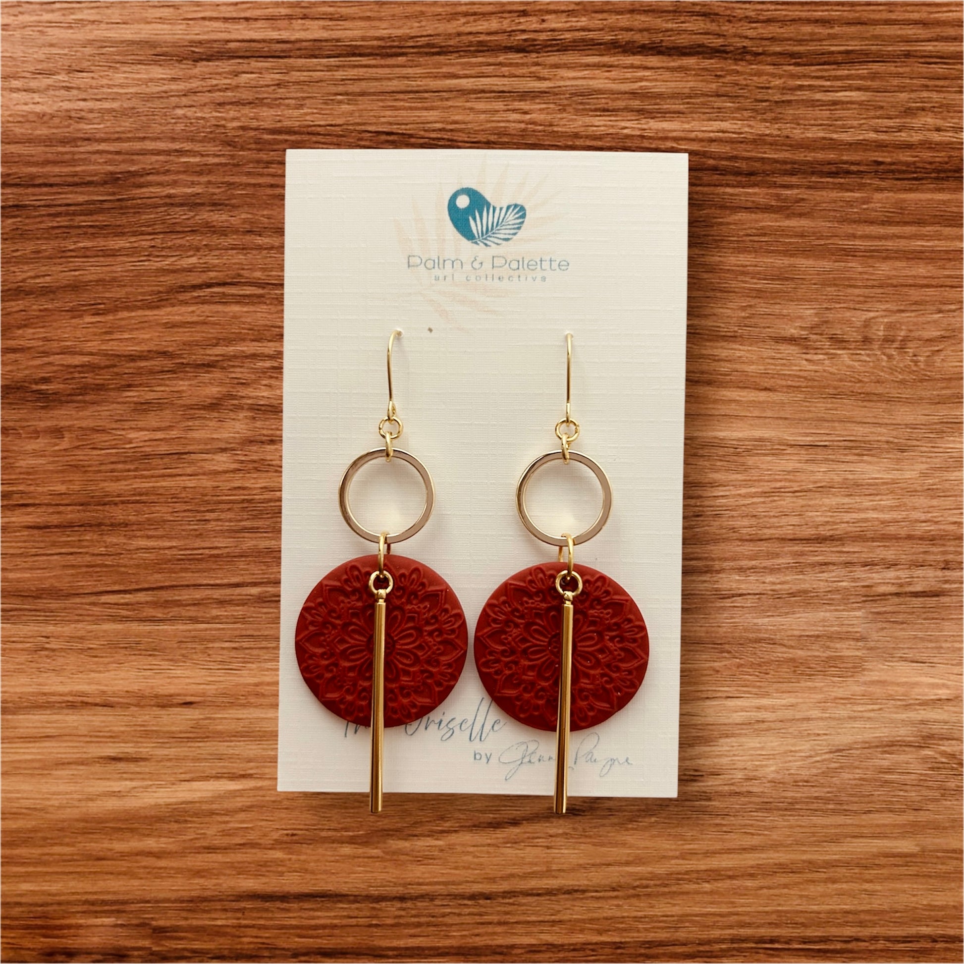– Polymer clay with 30mm textured circular mandala design